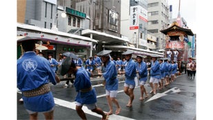 祇園祭山鉾巡行時の南観音山の曳手体験