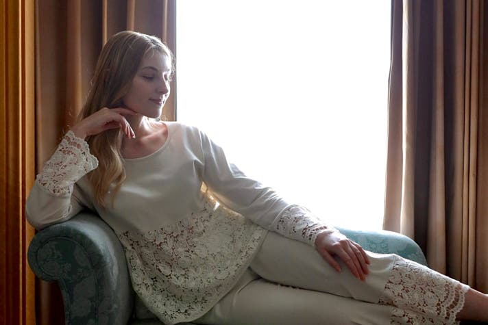 特別な日だけでなく、暮らしの中に自然と溶け込むエレガンスとして纏える素材。だから、ルームウェアに選びました。