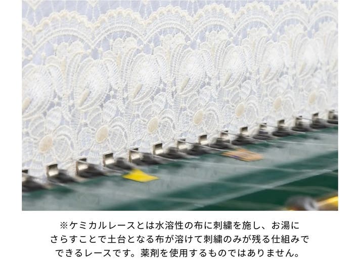 アイテムに使用しているのは、浮き上がるような模様が特徴の“ケミカルレース”。