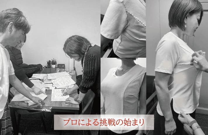 立体パターンに加えて、肩のラインがきれいに見えるよう、従来より後ろ側に肩線をずらしていたり、汗ジミ対策に後衿を少し高くしている等こだわりが満載です。
