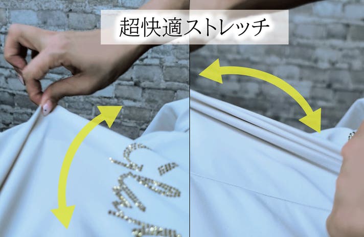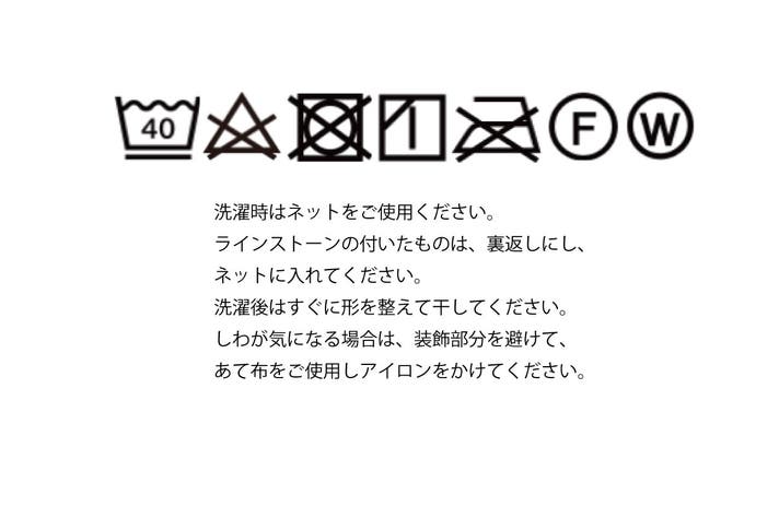 ・ラインストーン付きのTシャツは裏返して目の細かいネットに入れ、40度以下の水温で洗濯機でお洗濯してください。