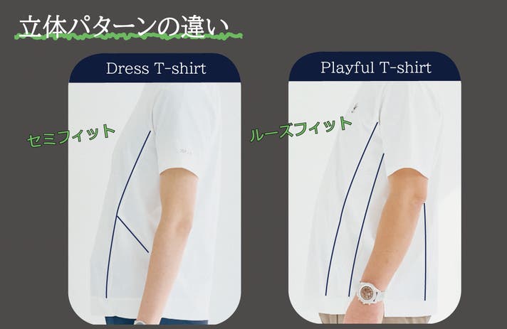 Dress T-shirtとPlayful T-shirtの大きな違いは、お腹部分のデザイン
