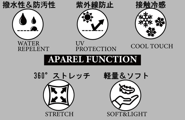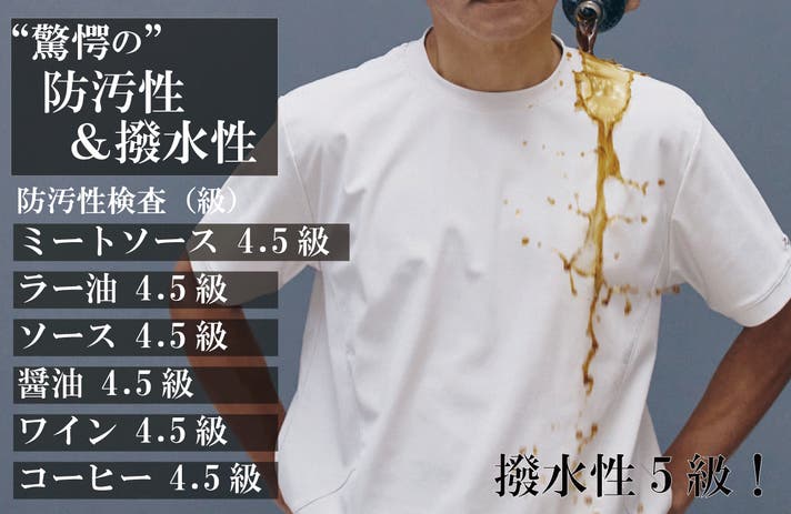 - 日本製の上質生地でどんな動きにもフィットする、360°ストレッチ。食べこぼしも怖くない防汚加工