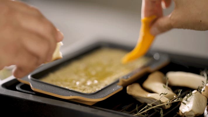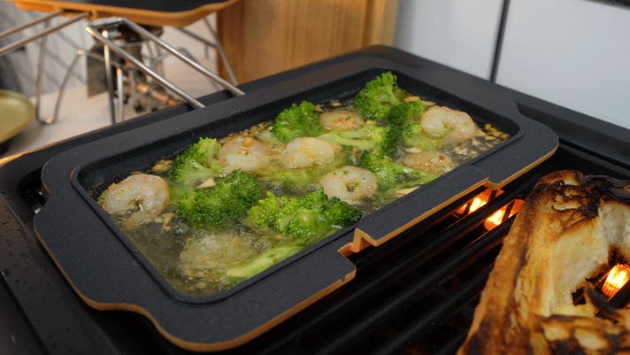 オプションのマルチプレートを使えば、スクランブルエッグや、目玉焼き、オリジナルソースなど、プレート料理も簡単に楽しめます。(マルチプレートご使用の際には煙が発生します)