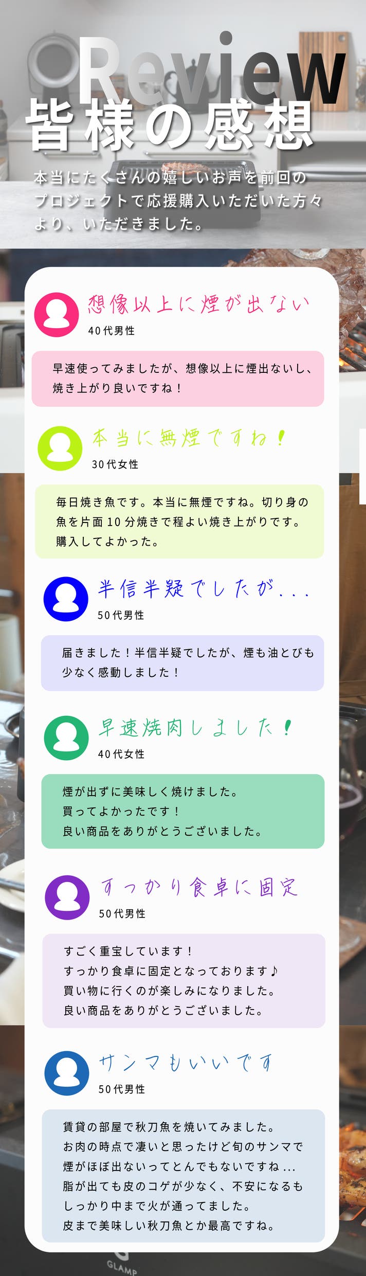 そこで、一般リリース前に安価で多くの方々にお届けすべくMakuakeを実施し、まずはGLAMP.の超少煙グリルで快適な焼肉ができることを知っていただきたい!との思いで前回プロジェクトを発足させていただきました。