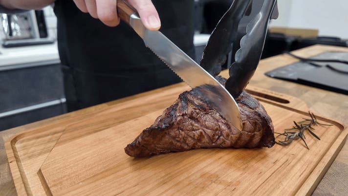 ↑実はパン切りナイフはギザ刃なので、お肉がとっても切れやすい包丁なんです!
