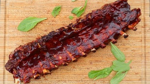 仕込み時にバーベキュー専用のラブ(シーズニング)を刷り込むことで、柔らかくジューシーに焼けます。90分以上弱火でじっくり焼くことで、骨と肉が魔法のようにスルッと抜け落ちます。