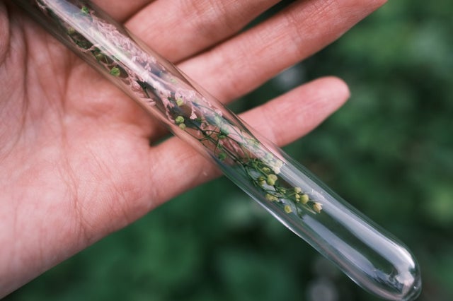 ドライフラワーが入ったガラスペンは非常に珍しいです。