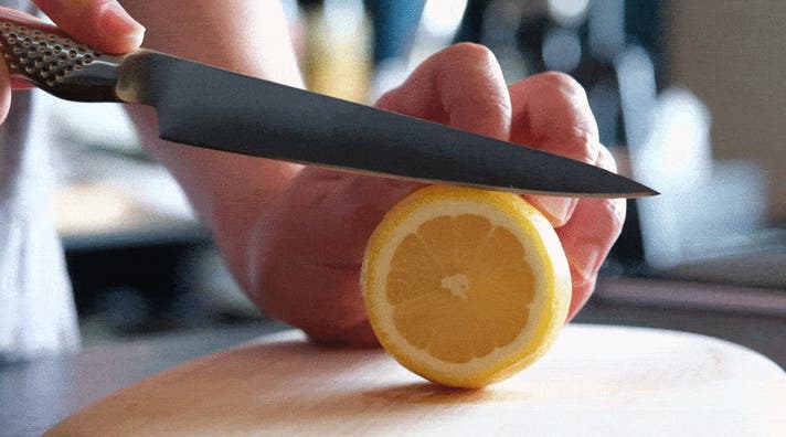 GLOBAL-PRO Bartenderは、刃先の角度と直線的なブレード設計によって細胞を壊さずに切れるため、果汁や香りを逃さず、断面まで美しく仕上がります。