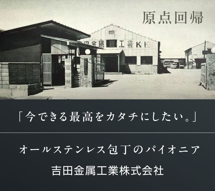 1954年、燕三条で創業した吉田金属工業は、鋼が常識だった時代にステンレスでも切れる包丁を作る挑戦から始まりました。