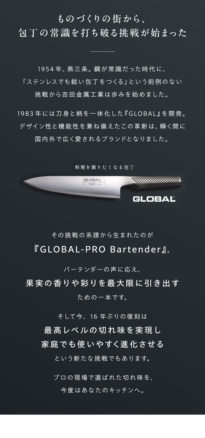 - 果実の香りや彩りを引き出す1本! "GLOBAL-PRO バーテンダー"が復刻。