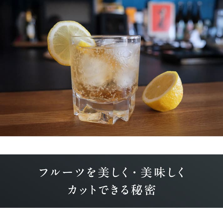 Bartenderはフルーツの飾り切りから野菜の薄切り、さらには前菜などに用いるフレッシュチーズや生ハム、魚の薄切りまで幅広く対応、これ一本で食卓のあらゆるシーンを支えます。