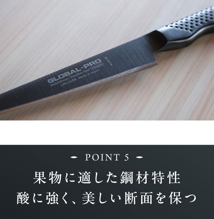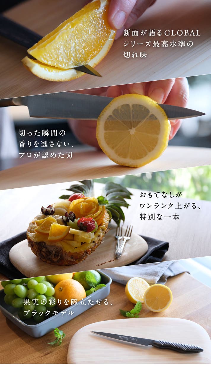 その挑戦の延長線上で、バーテンダーの声に応えて誕生したのが「GLOBAL-PRO Bartender」です。フルーツの断面を美しく、香りを逃さずに仕上げること。小さな一杯を最高の一杯にするために求められた一本でした。