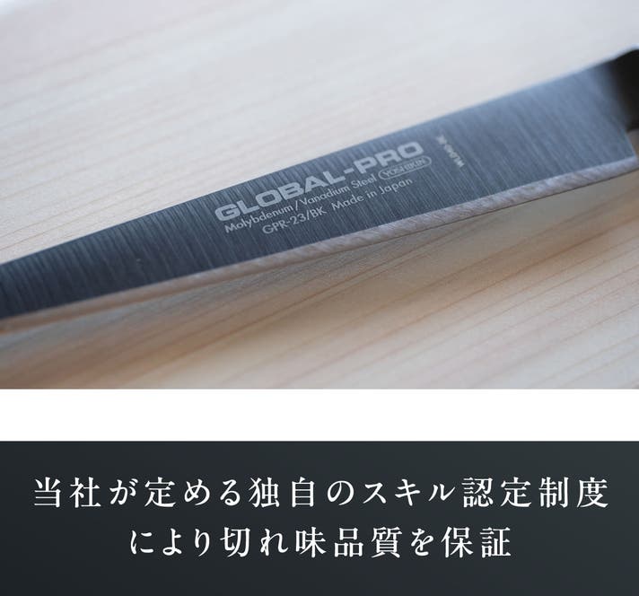 - オールステンレス包丁のパイオニアGLOBALの挑戦! シリーズ最高水準の切れ味を目指す。