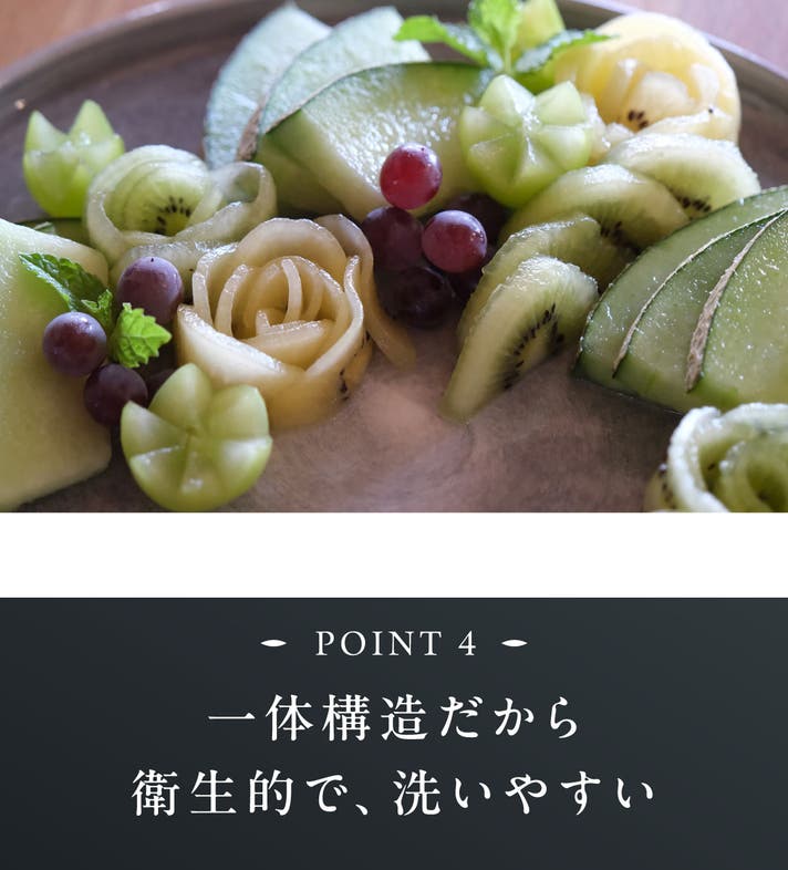 機能性とデザイン性を兼ね備えたブラックカラーを新たに追加することで、フルーツカットをより楽しく演出します。