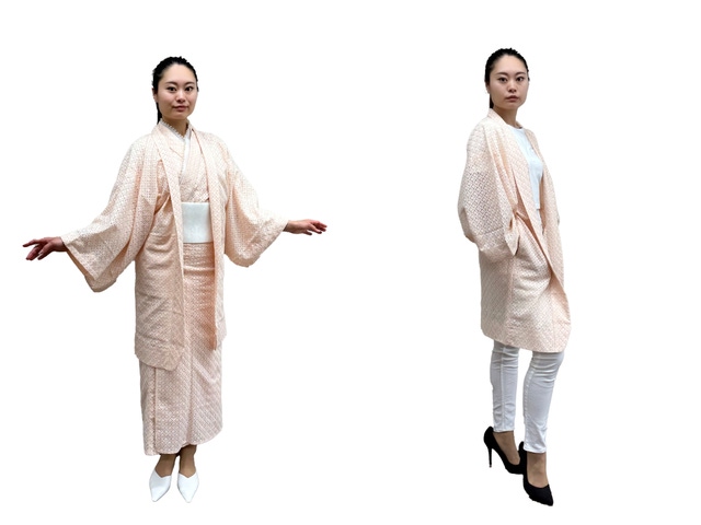 極限まで簡素化された形でも、着物の品格を生む直線的で美しいシルエットを大切に残しています。なお縫製は、国内(岐阜県)の工場で1枚1枚丁寧に製作しております♪