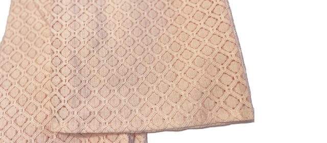 柔らかな肌触りに優れた伸縮性、品のある光沢感、シワになりにくいなどの優れた特徴を持つ、少し厚みのある生地です。