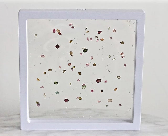 今回そんなトルマリンを色々なカラーをなんと20ctとホワイトトパーズ1.5ctを贅沢にディスプレーフレームに収めてみました!