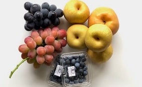 フルーツ盛り合わせ(ぶどう2房・ブルーベリー2p・梨5個)+GLOSA ORGANICのオリジナルエコバック(非売品)です。どれも味や製法にとことんこだわり丁寧に作られたフルーツです。