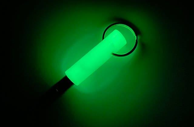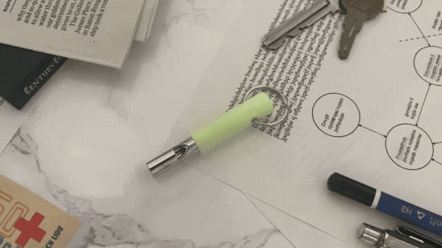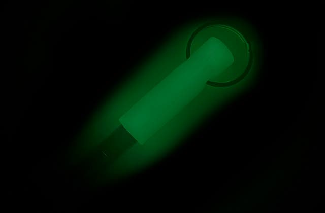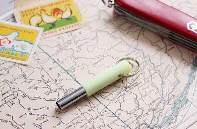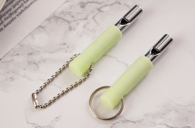 - 金属製のホイッスルを蓄光シリコーン素材でカバーした特殊な笛