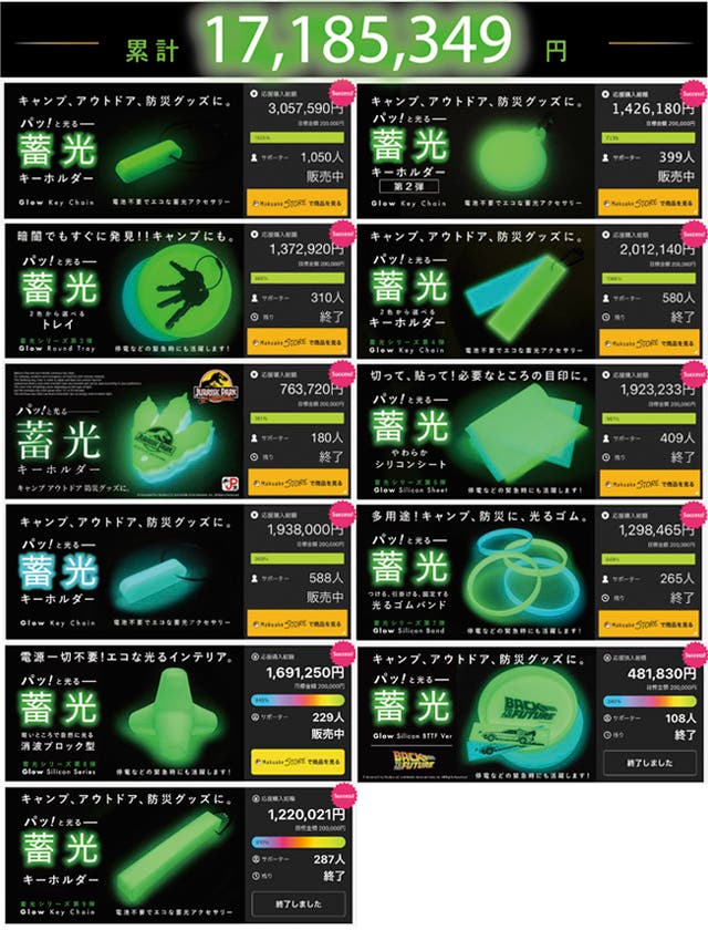 Makuakeでスタート販売した蓄光シリーズは総計4400人以上の方から応援購入頂きました、大好評の企画の第10弾になります。(2025年7/15現在)