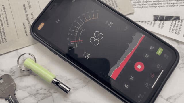 画像はスマホのアプリで計測したものです。約100dB以上は出ています。