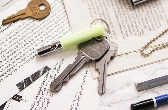 試行錯誤しましたが、ようやく蓄光ホイッスルが完成しました。スリムでキーホルダーのようですが緊急時にも使える音量です。防災グッズとしてベットサイドに置いたり、よく使うバッグに付けたりアウトドアにも。