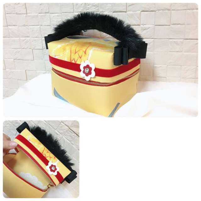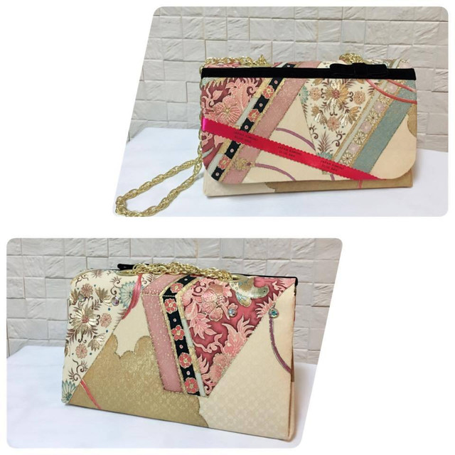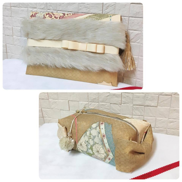 这个包包使用与日本的传统服装kimono相同的材料但是不用缝的方式而是才用胶水黏着的方式制作而成的包包