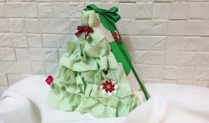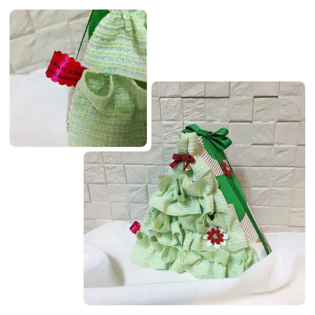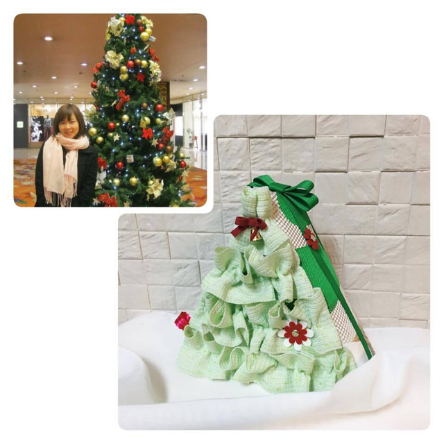 天使のクリスマスツリーです。日本伝統の誇る総絞り着物織物で作った置型ツリーです。