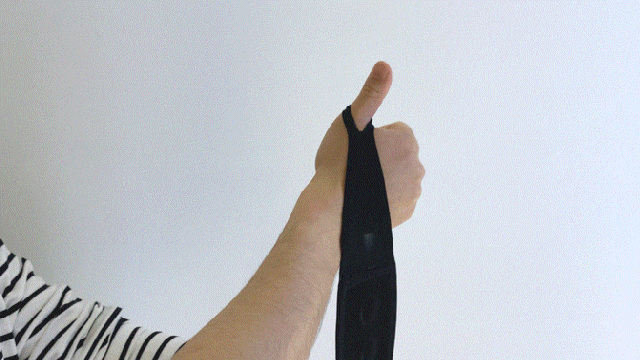 GMON(ジモン)手首保護サポーターは親指に挟んで巻く仕組みの為、ずれたりすることもなく手首を包み込みながらしっかりと支え、サポート力をUPします。
