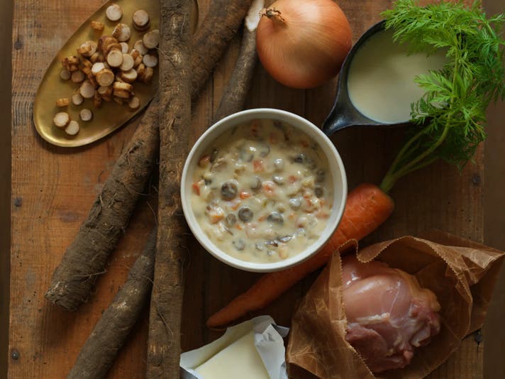 - ごぼうの食感にこだわった栄養満点の具沢山スープ。