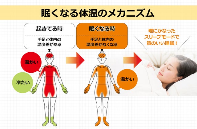 一般的に言われている人が眠くなるメカニズムは、赤ちゃんがいい例です。眠くなっている赤ちゃんは手が温かいですよね。この原理と同じなんです。