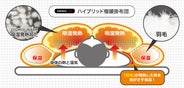 睡眠中に発生する湿度で吸湿発熱綿が発熱し、羽毛がその熱を逃がさず保温する科学と自然のいいとこどりのハイブリッド布団が温かい睡眠環境を提供します。