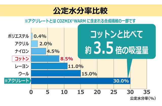 COZMIX®️ WARMは『公定水分率が非常に高い』特徴をもっているからなんです。