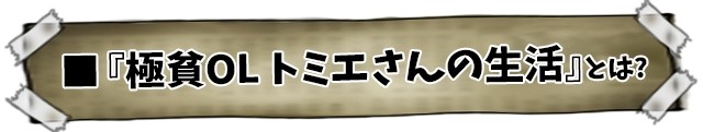 ――とあるボロアパートの一室。そこには虚ろな瞳のビンボー女子・トミエさんが日がな一日何をするわけでもなく生活しています。そんなトミエさんに対して私たちができることは内職をうながし、静かに見守ることくらい…