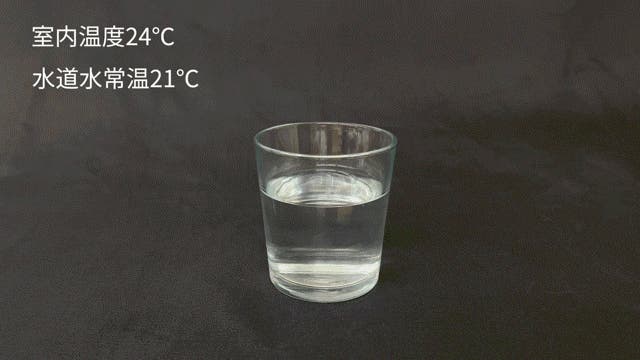 水に極氷を入れてしっかりステアして冷やし、その後どのくらい冷たさが持続するのかをテストします。