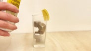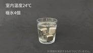 その常温水に冷凍庫で2時間冷やした【極氷】を4つ入れ