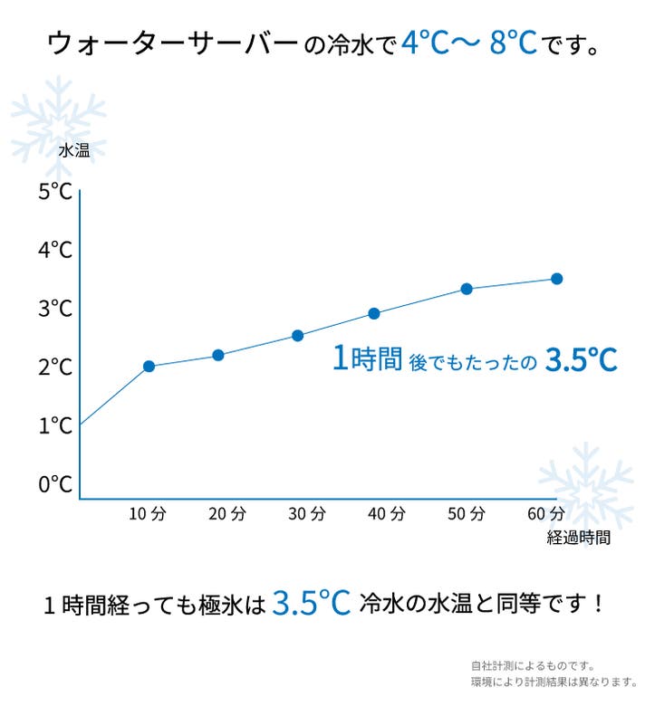 1時間経過後も4℃以下の冷たい温度を保つのが極氷です!