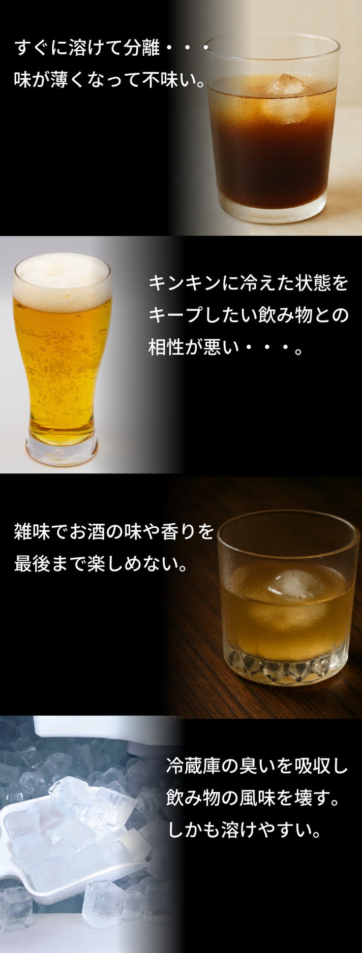 - 氷のように溶けないから【飲み物が薄まらず】本来の美味しさが最初から最後の一滴まで楽しめます。