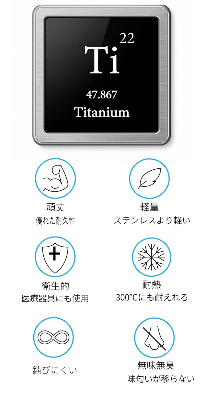 - 99.9%チタン製だから【清潔で臭みゼロ】大切なお酒や珈琲などの味や香りを存分に愉しめます。