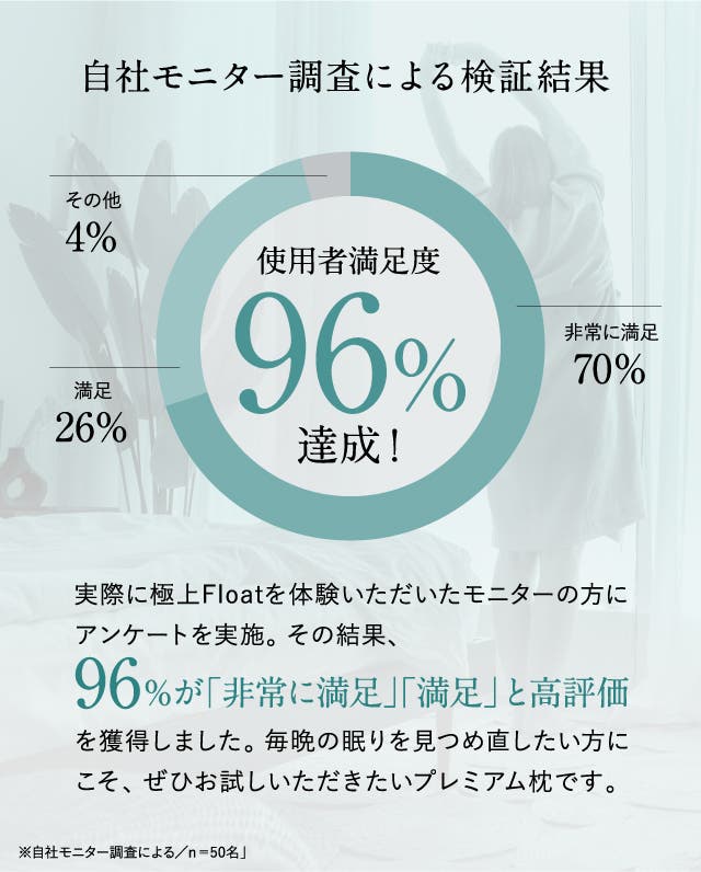極上Floatは、頭をふんわりと包み込み、自然と寝姿勢が定まる設計。