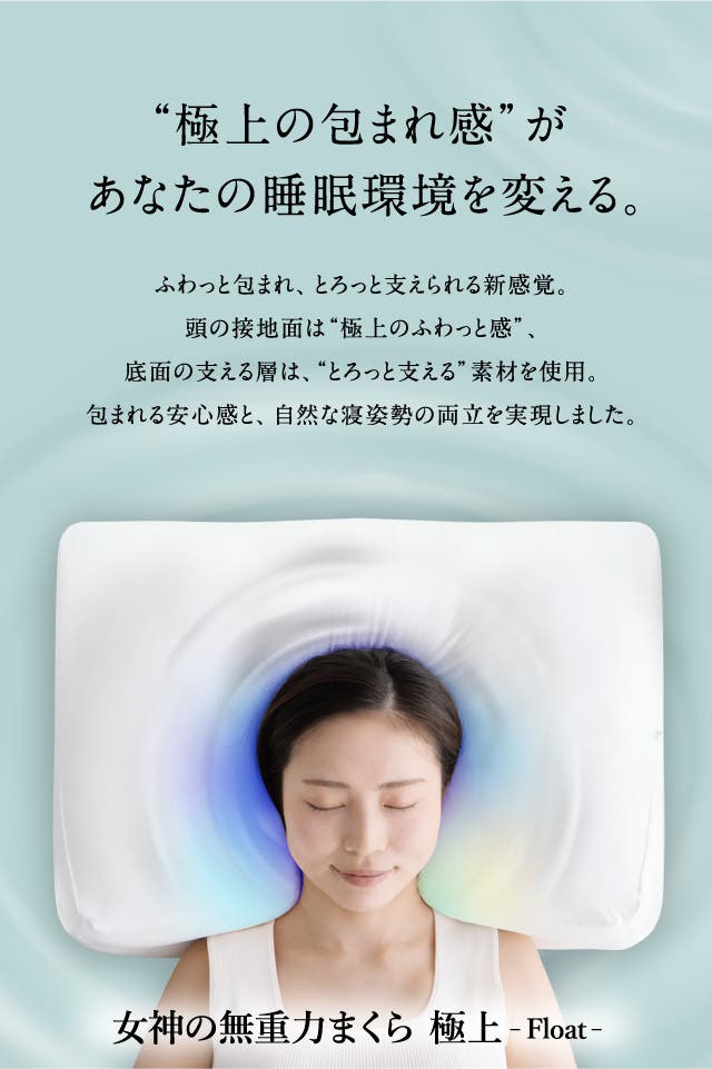 今回は、その進化版ともいえる女神の無重力まくら「極上Float」をお届けします。