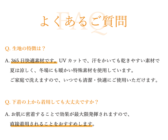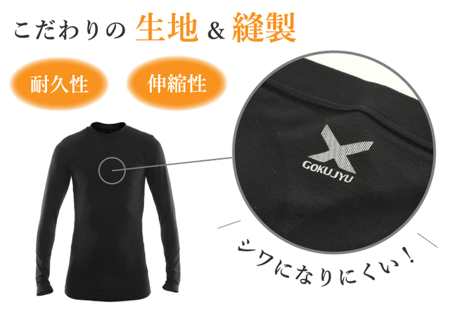 ⇒ 身体に密着する適度な締め付けと繊維一本一本に施された高機能加工