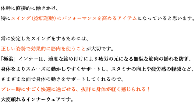 ゴルフを楽しむすべての方に。バランスパワーサポートインナー「極柔」