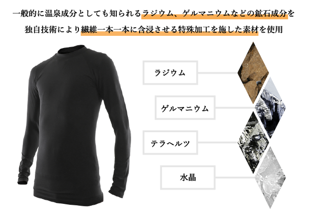 一般的に温泉成分としても知られるラジウム、ゲルマニウムなどの鉱石成分を
