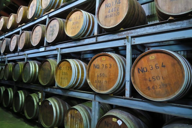 焼酎やリキュールの原料は、できるだけ熊本県産にこだわり、大量生産ではなく伝統の製法を守り作りあげています。樫樽貯蔵庫では、焼酎原酒が四季の流れのなかで熟成の眠りを刻み、目覚めの時を待ちます。