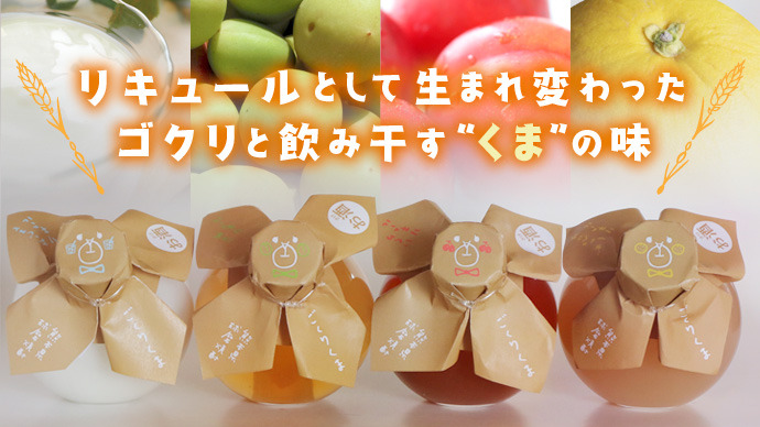 ごくりくまでは、梅・いくり・晩白柚(ばんぺいゆ)・ヨーグルトの4つのテイストがあります。どれも、熊本県産の果物を使用し、農家さんの愛情をたっぷり受けた安心・安全のリキュールに仕上がっています。