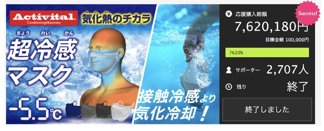 応援購入をしていただいた方に【水冷感マスク】プレゼント!