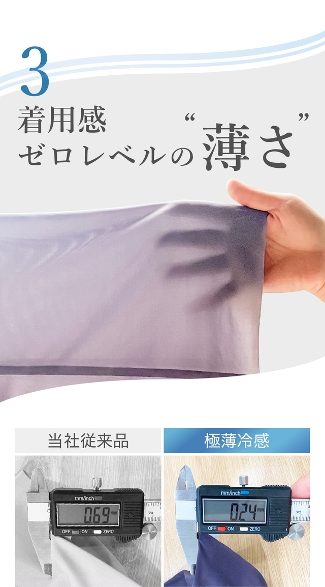 - 衣類からの解放!0.24mmの薄さと接触冷感素材で蒸し暑い夏を快適に!