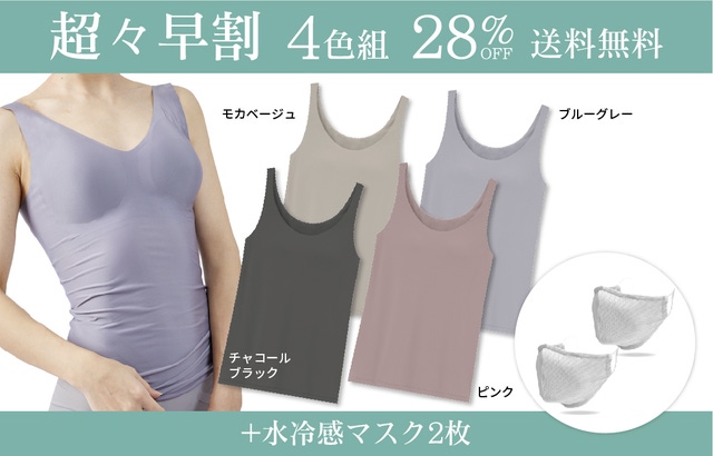 【超早割/追加】極薄冷感肌呼吸ブラタンク〈4色セット〉S-M 水冷感マスク2枚